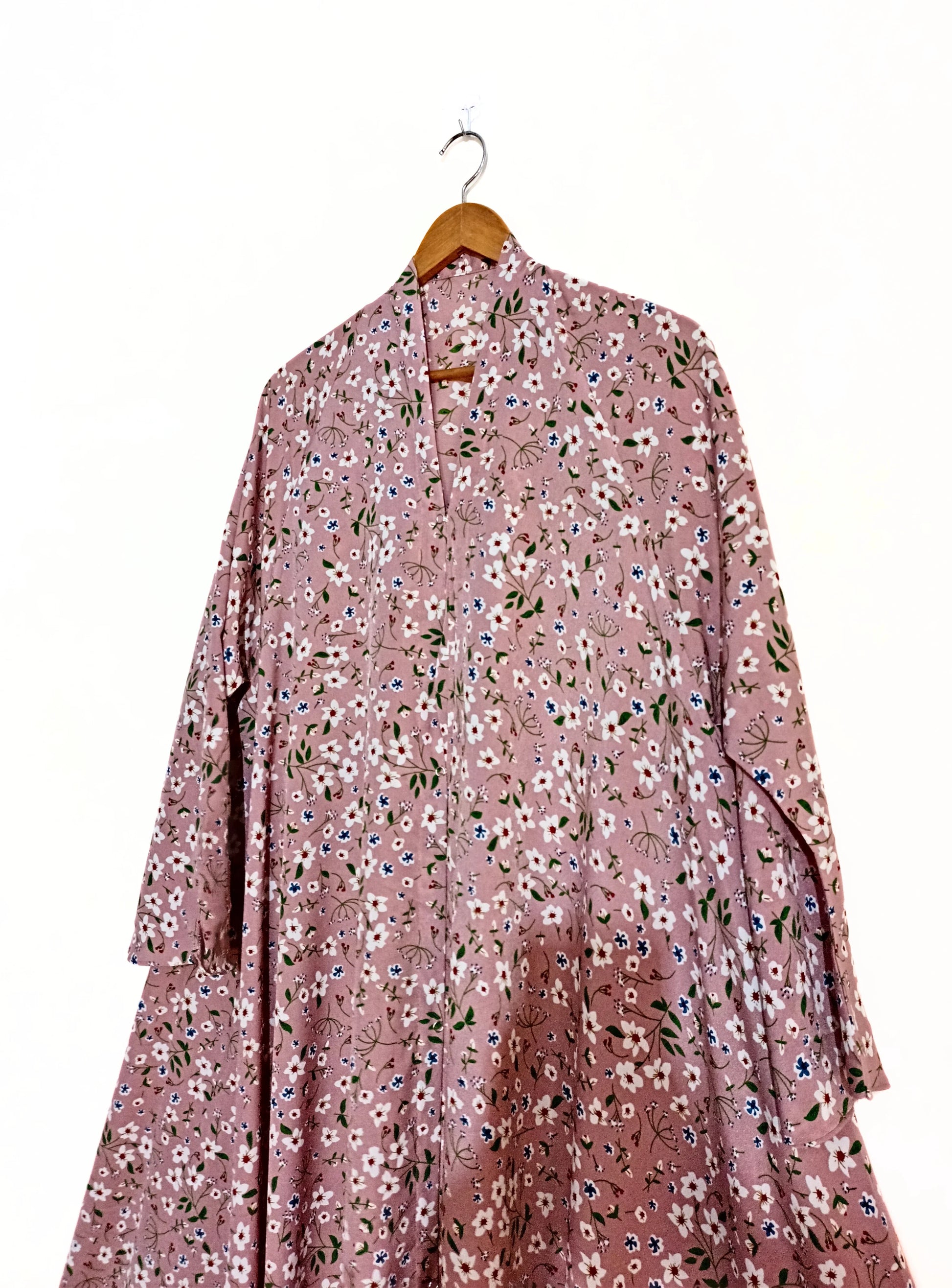 Design: Front-open silhouette with full sleeves, enhanced by an elegant garden-inspired floral pattern.