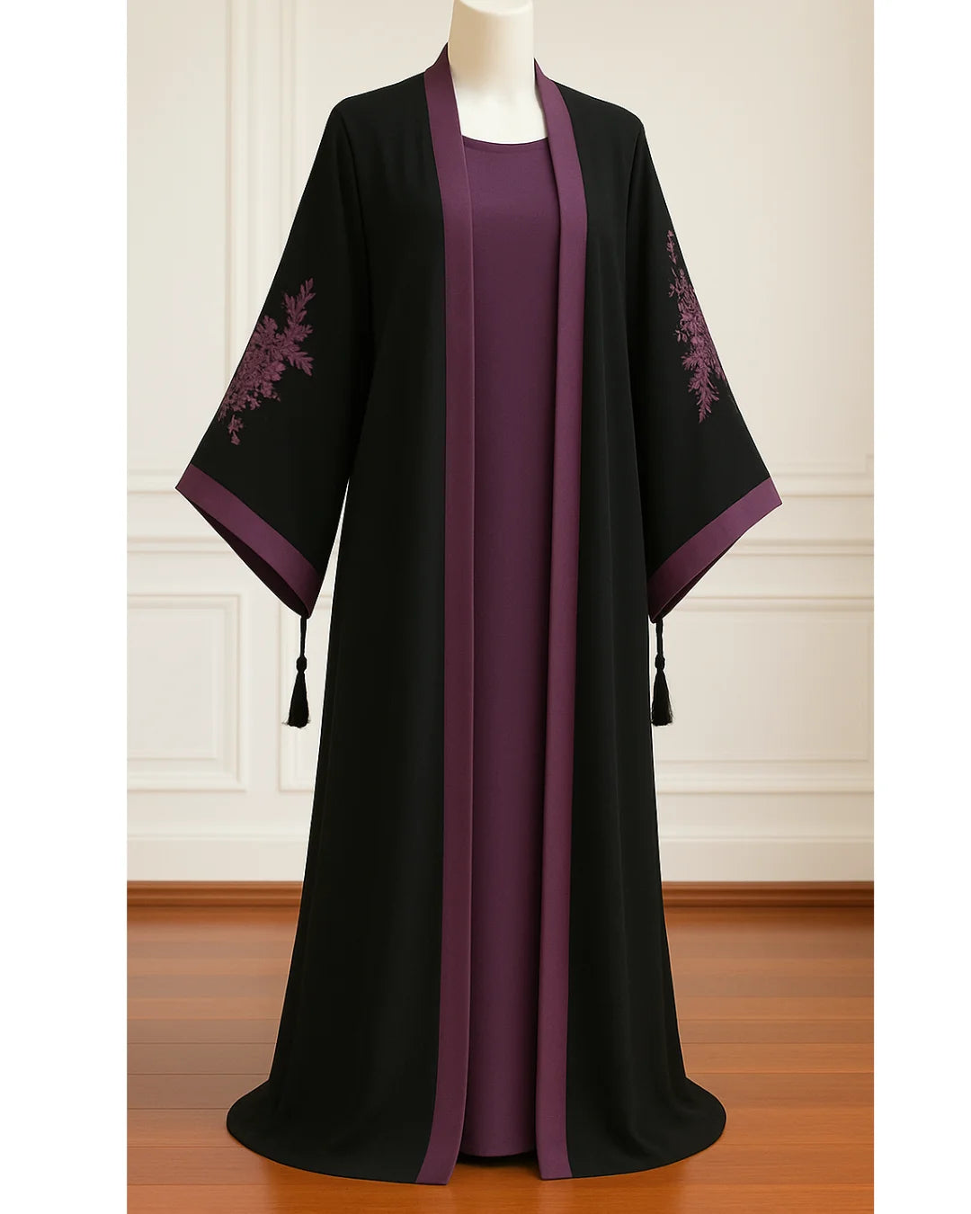 Design: Gown style abaya with attached inner and handwork embroidery on the sleeves.