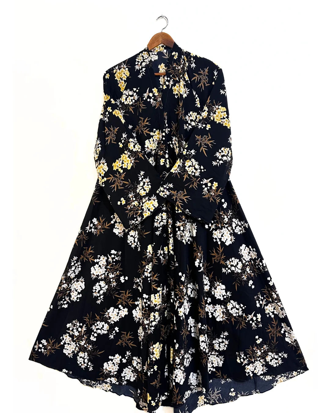 Honey Flowers Front Open Long Flair Abaya