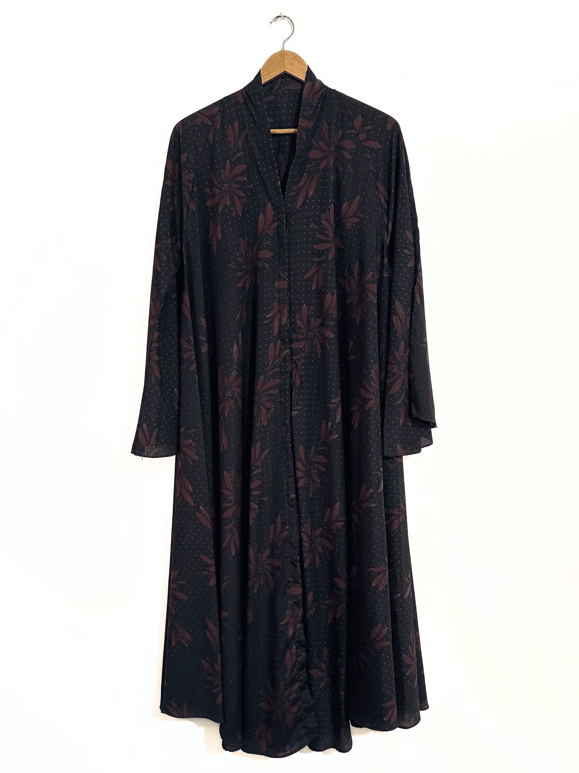 Design: Front-open abaya with button-down closure and full sleeves, finished with an all-over floral print.